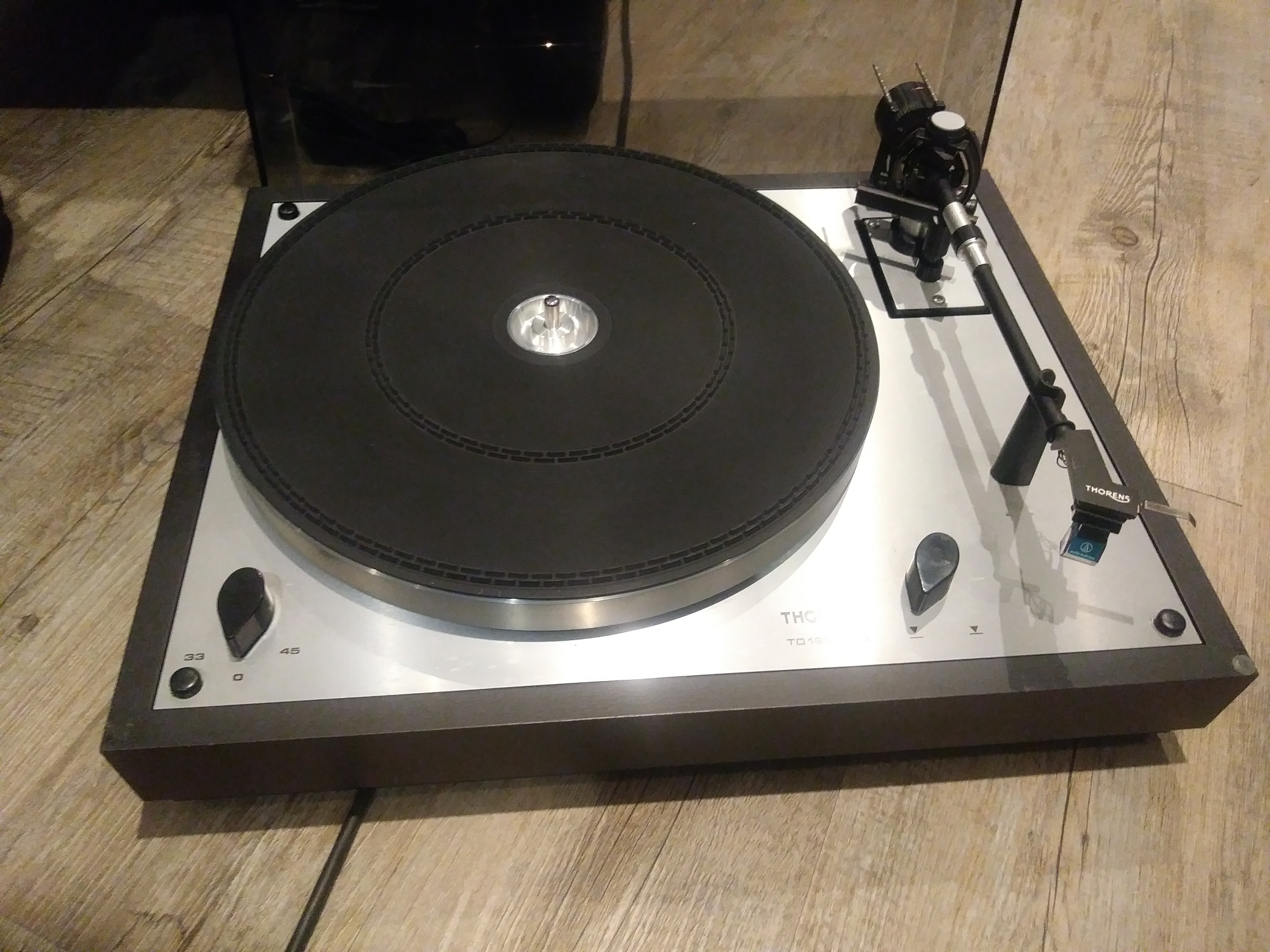 • Drehzahl: 33⅓, 45 U/min (mechanisch umzuschalten)
