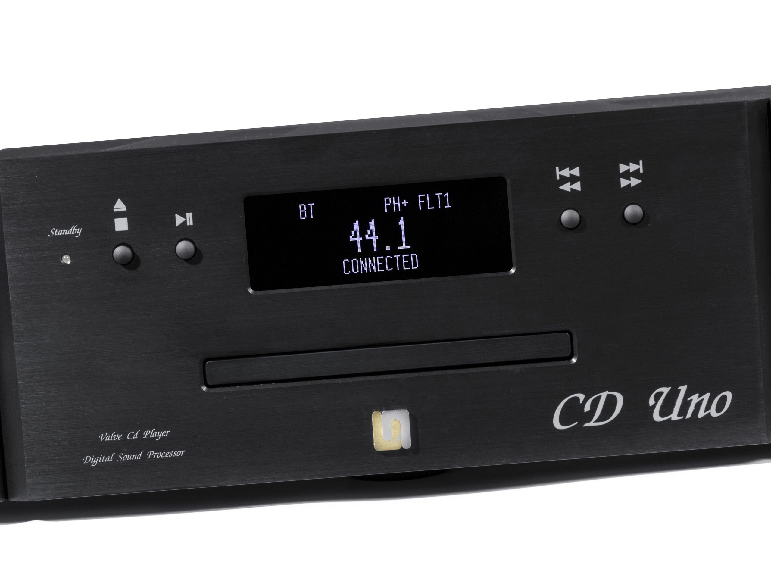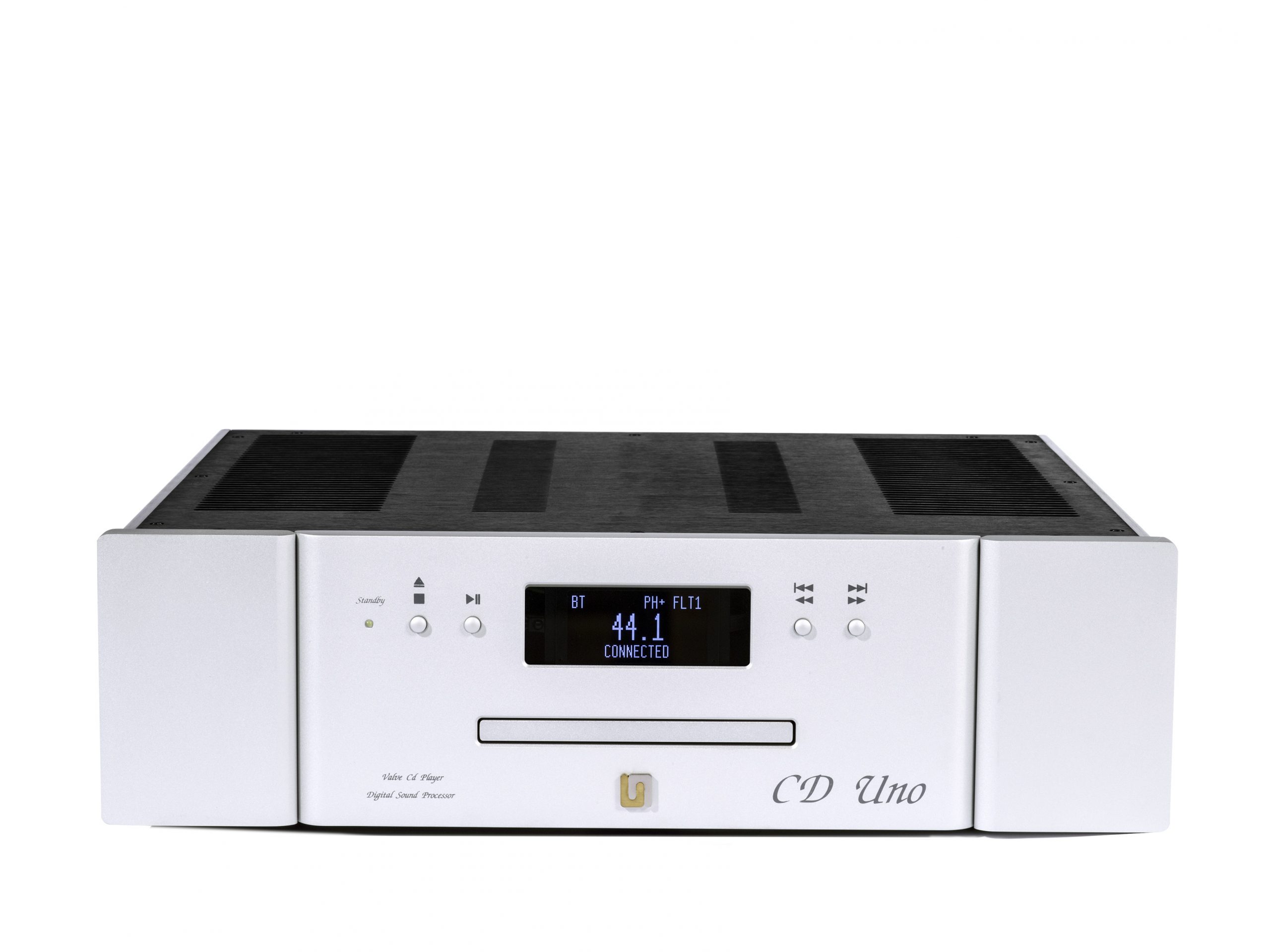 Zu diesem Zweck bietet der CD Uno eine ganze Reihe von Ein und Ausgängen, z. B. für USB und Toslink Kabel. Für drahtlose Übertragung von anderen Geräten ist zudem ein Bluetooth Empfänger eingebaut. Im Verstärker arbeitet eine Doppeltriode ECC82 (12AU7) in Class A Schaltung kombiniert mit einem Ausgangstreiber ebenfalls in Class A für niederohmigen Ausgang und ideale Anschlußbedingungen.